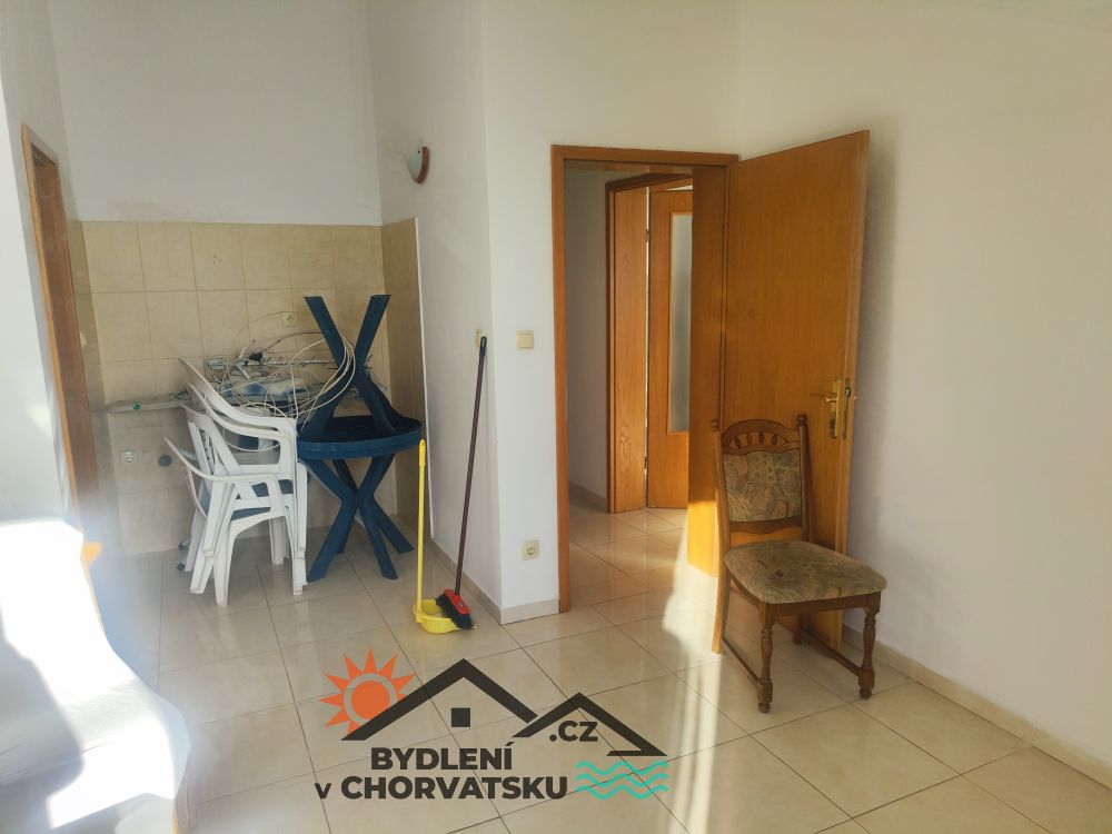 V Podstraně, střediskové obci hned vedle Splitu, nabízíme k prodeji bytový dům s garáží a obchodním prostorem. Dům se nachází v první řadě u moře (přes cestu) a má parkování pro 8 aut před domem. V přízemí se nachází 5 metrů vysoký obchodní prostor, částečně vybavený galerií. Prostor má 92 m2. Ve zvýšeném přízemí se nachází byt s třemi ložnicemi, obývacím pokojem, kuchyní, dvěma koupelnami a velkou terasou. Byt má 145 m2, ústřední topení a dvě klimatizace. Do prvního patra se dostanete po vnitřním schodišti.